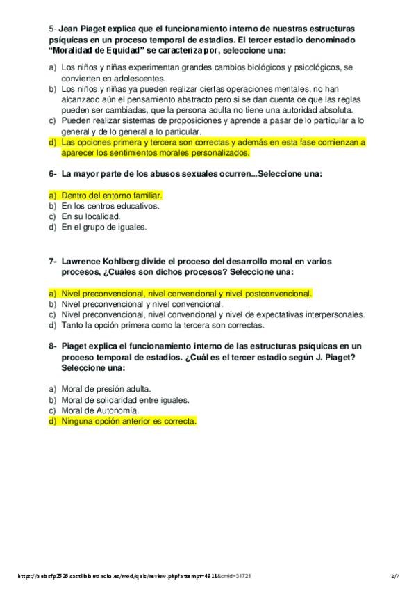 Cuestionario 3 Socioefectivo (Posibles preguntas de exámen) (Castilla-La Mancha)