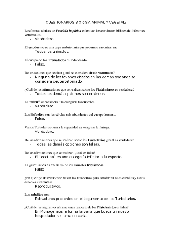 CUESTIONARIOS BIOLOGÍA ANIMAL Y VEGETAL