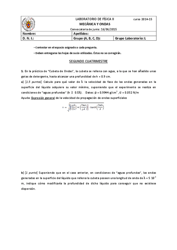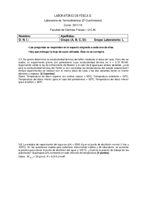 He publicado nuevos examenes de 2º Laboratorio de Física II: TERMO - Junio 2012.pdf