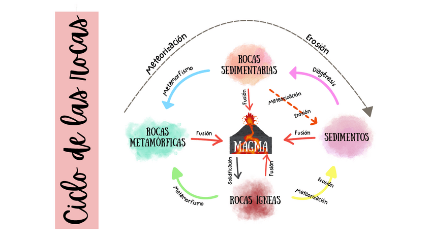 Mapas conceptuales sobre el ciclo de las rocas.