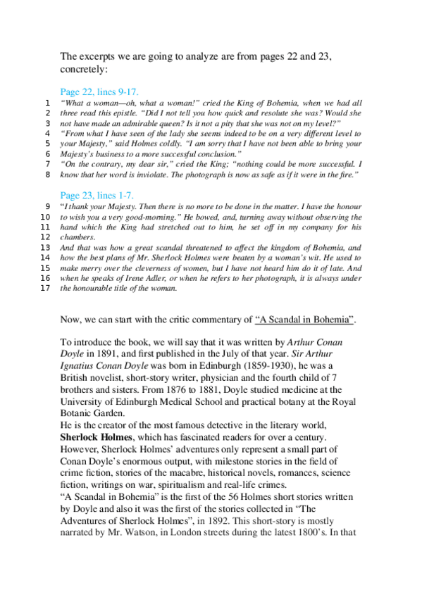 He publicado nuevos apuntes de 1º Análisis de Textos Literarios Ingleses: Commentary 1ºA SCANDAL IN BOHEMIA.docx