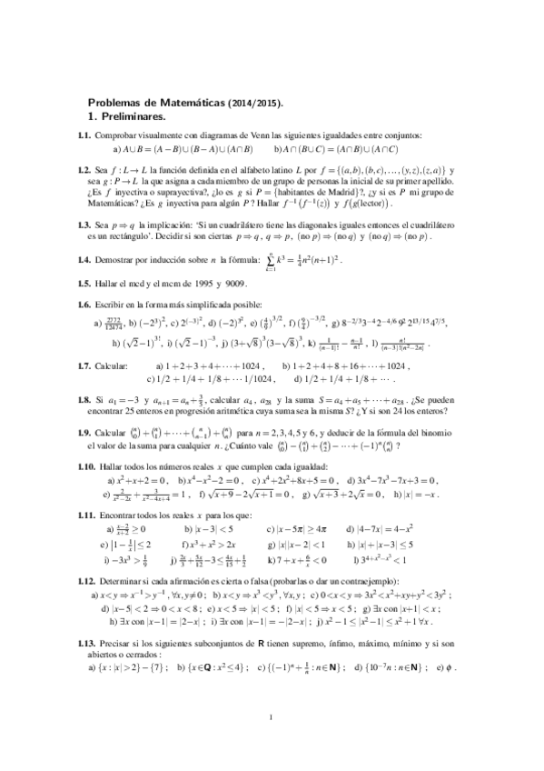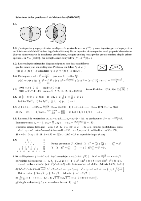 He publicado nuevos ejercicios de 1º Matemáticas: Más Ejercicios y Soluciones