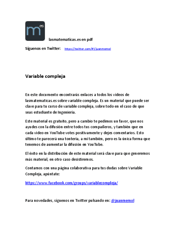 He publicado nuevos otros de 1º Matemáticas: Variable compleja vídeos.pdf