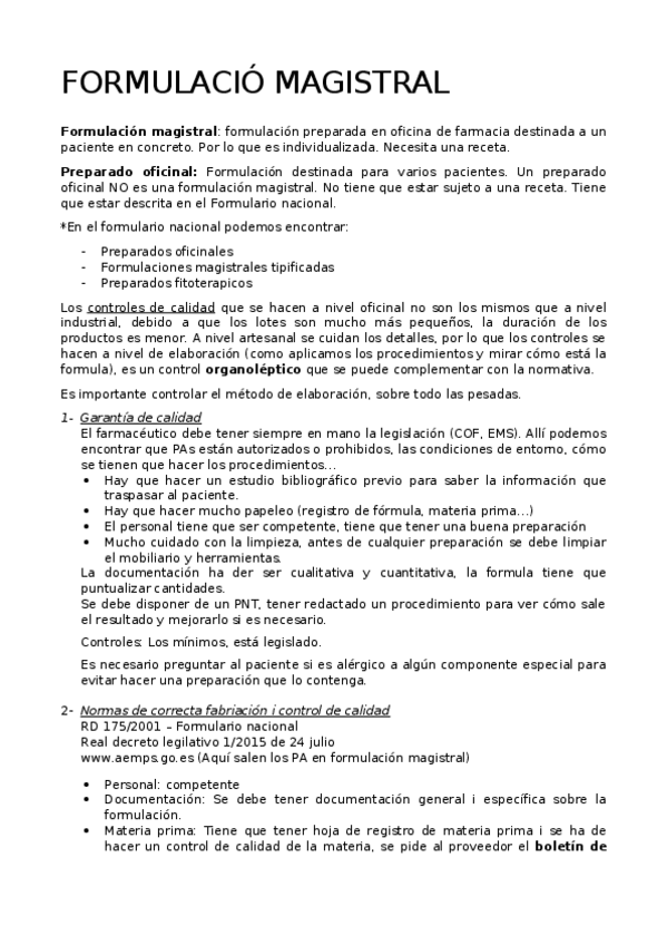 He publicado nuevos apuntes de 5º Formulación Magistral y Oficinal: Apunts BLOC 1