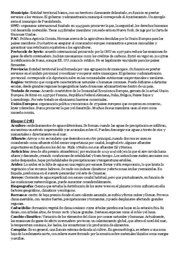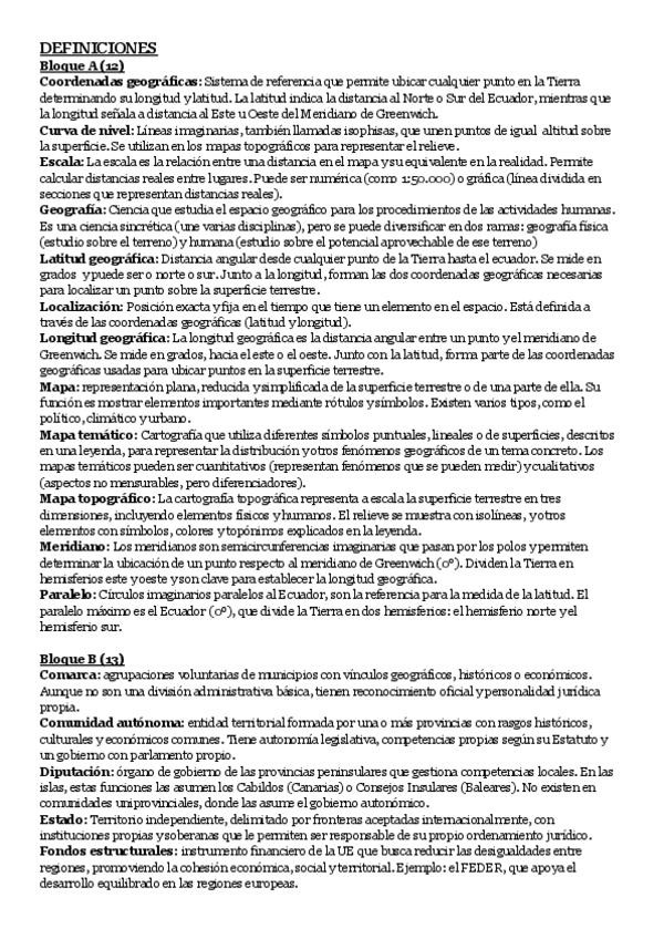 Apuntes Geografía (temas, definiciones, comentarios, mapa) 2o Bach