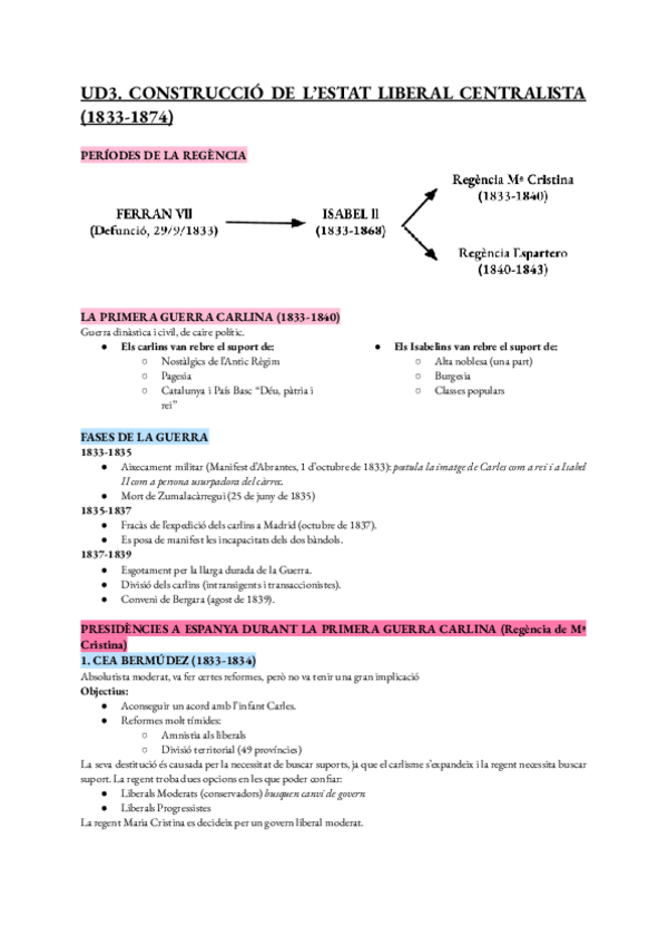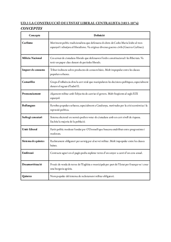 Apunts, resum i fitxa de repás historia U3.La construcció de l'estat liberal centralista 2n batxillerat