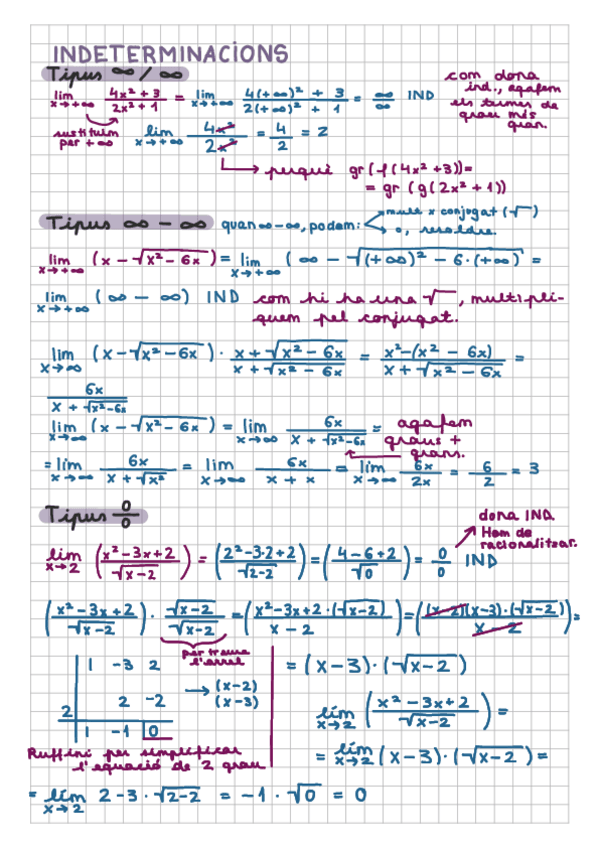 Resumen y ejercicios de matemáticas tema 1, 2 y 3 límites y derivadas en catalán.