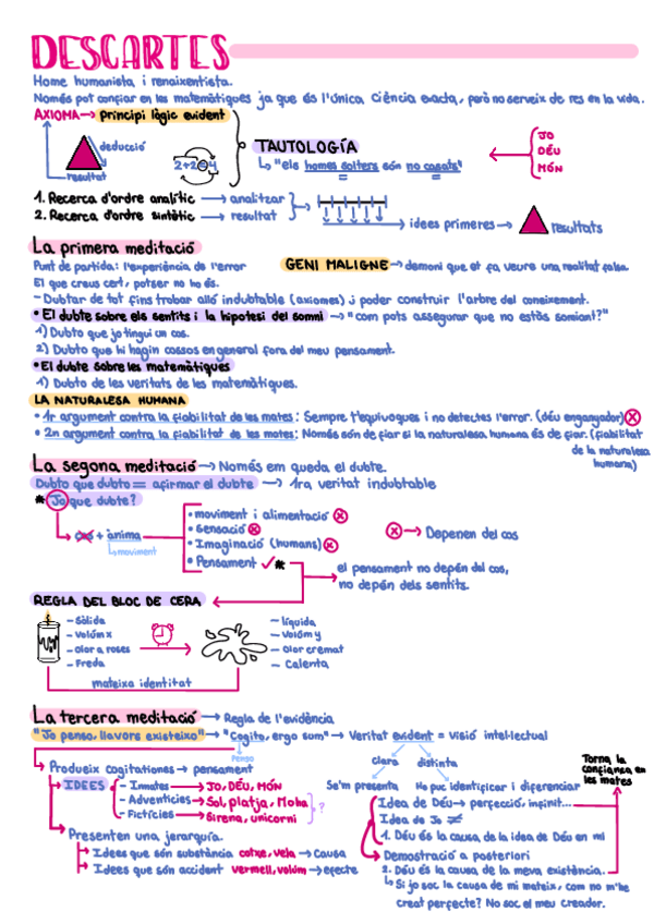 Resumen de descartes (hasta la 3ra meditación), historia de la filosofia, 2n batx, en catalán.