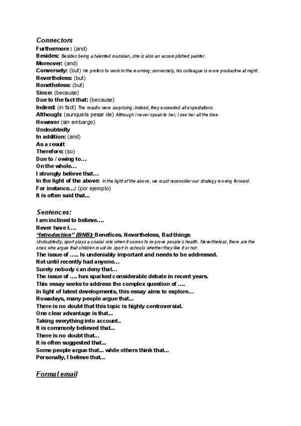Apuntes de inglés de 4to de ESO, 1r de Bachillerato, nivel principiante y del nivel B2-C1 de Cambridge. Vocabulario, conectores, tiempos verbales, apuntes....
