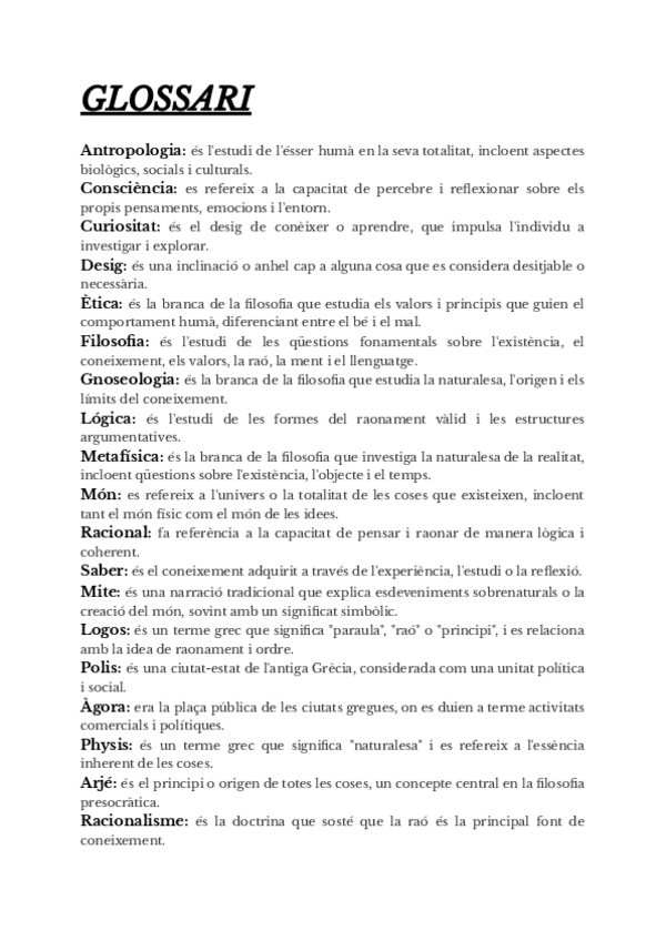 Golssari i apunts de filosofía de 1r de batxillerat.