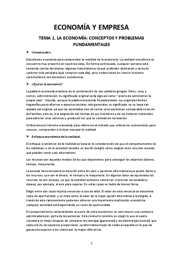 He publicado nuevos apuntes de 1º Economía y Empresa: Temas 1 al 12