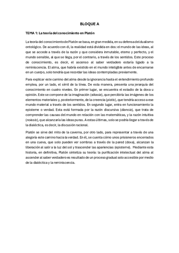 BLOQUE A: microtemas redactados + esquema memorización; pau navarra historia de la filosofía 2025