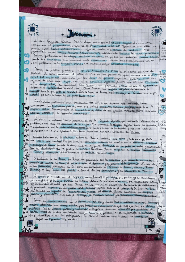 Ejercicios resueltos de los exámenes trimestrales y de la PAU. Incluyen el ejercicio 2 "a) Relaciones internas y funciones constitutivas del género dramático. b) Relación de la obra con su contexto histórico-cultural de producción. c) Inscripción en la