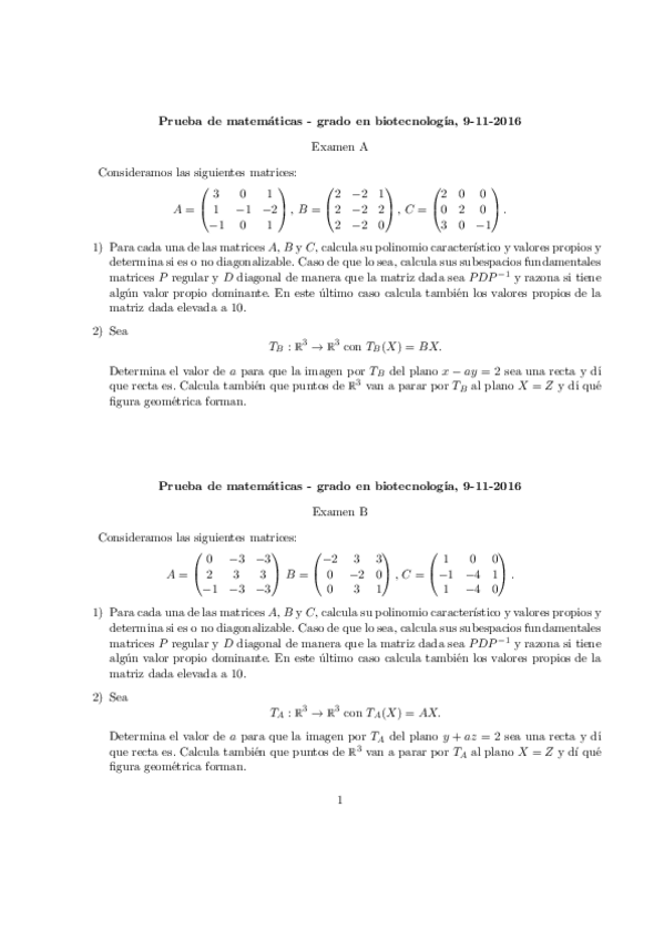 He publicado nuevos examenes de 1º Matemáticas: Exámenes resueltos