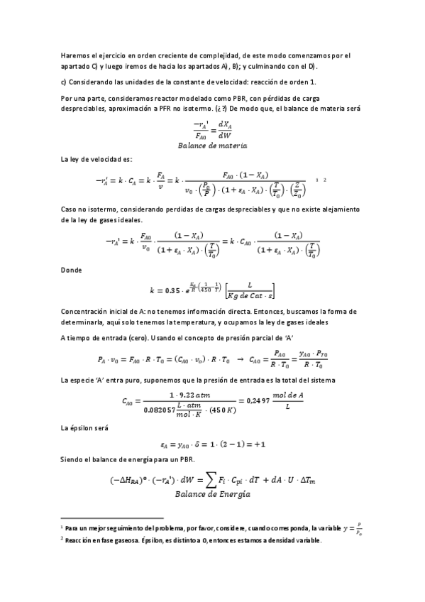 Problema modelado en RD en estado estacionario de una reacción en fase gaseosa.