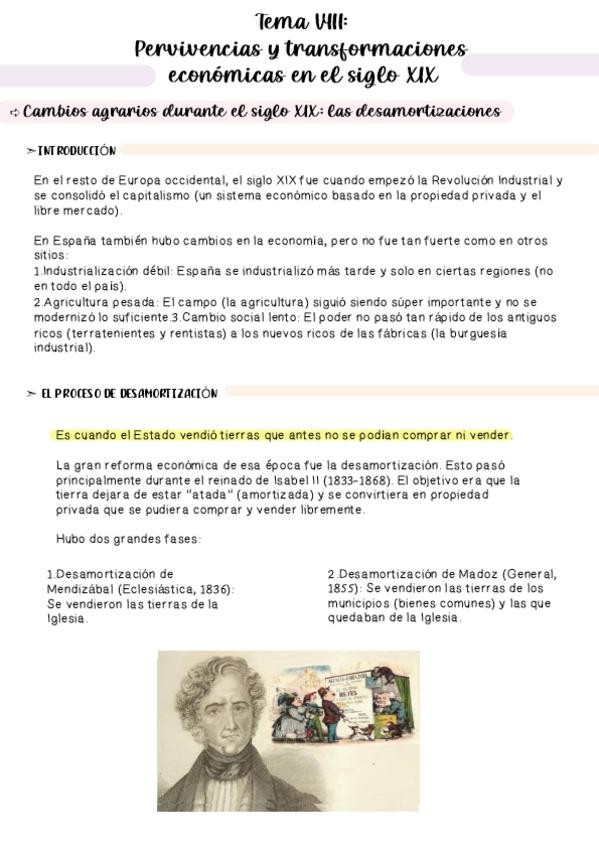 Resumen claro y completo del Tema 8 de Historia de España (2º de Bachillerato). Incluye desamortizaciones de Mendizábal y Madoz, transición al capitalismo, industrialización en España y movimiento obrero (anarquismo y socialismo). Ideal para EBAU / Select