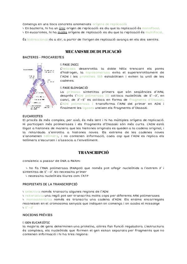 incluye: - teoria un gen, una enzima (mendel) - duplicación de DNA - mecanismos de duplicación - transcripción - traducción - control de la expresión génica - ejercicios