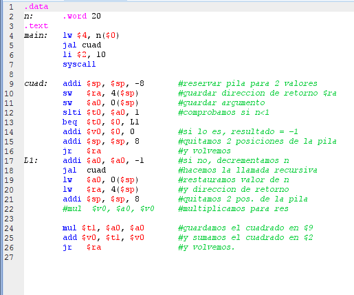 Ejercicios en Mips