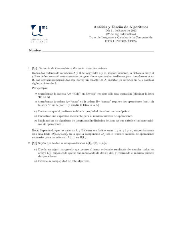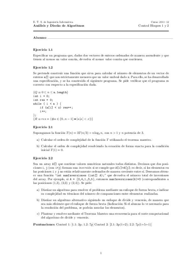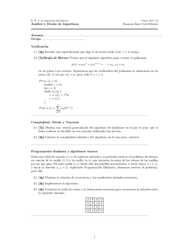 He publicado nuevos examenes de 2º Análisis y diseño de algoritmos: Examenes 2012
