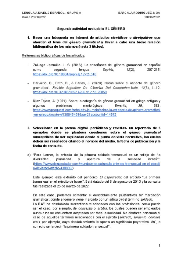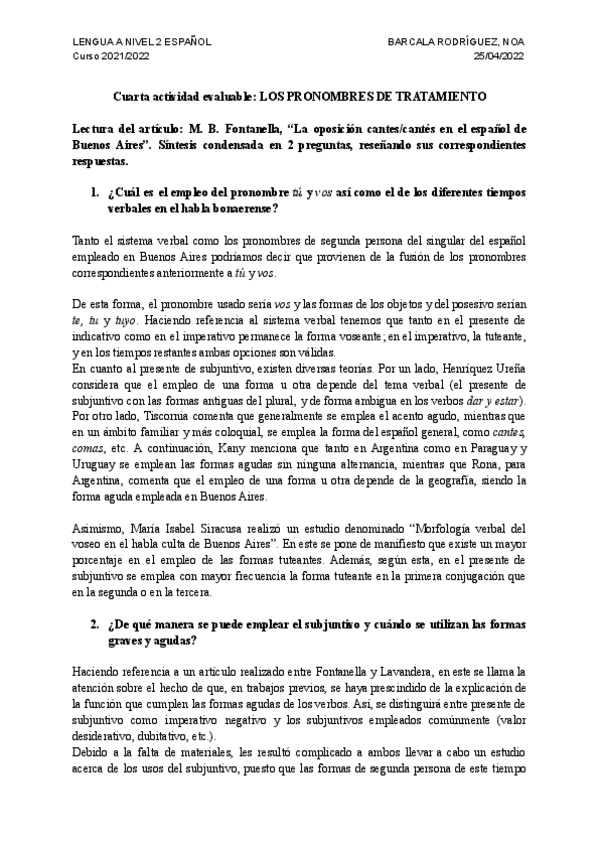 Lengua A NIVEL 2 ESPAÑOL