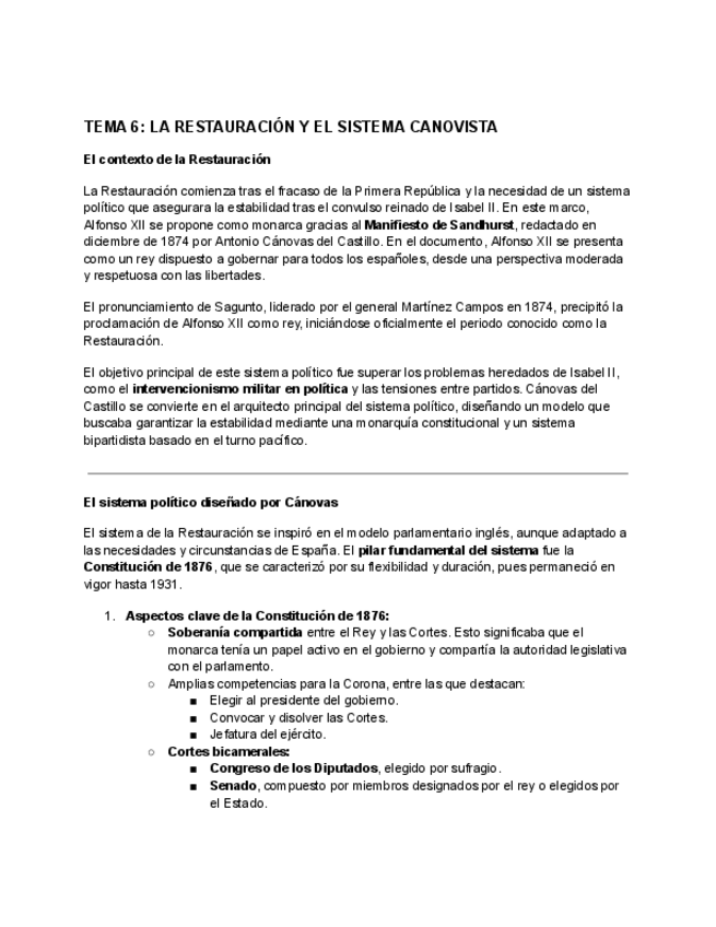 apuntes de historia de España tema 6. Redactado y listo para estudiar.