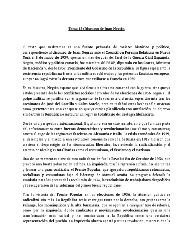 apuntes de historia de España tema 15. Redactado y listo para estudiar.