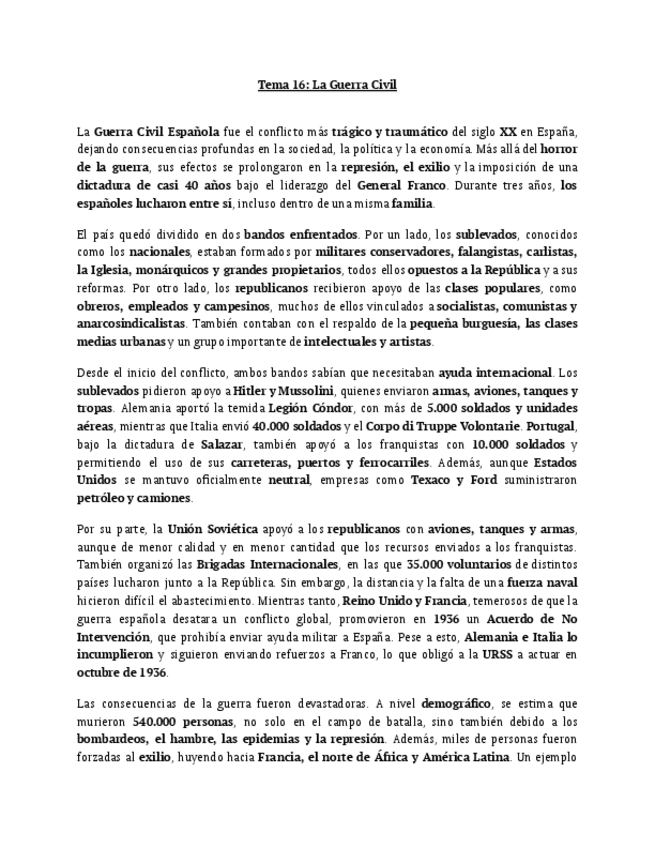 apuntes de historia de España tema 16. Redactado y listo para estudiar.