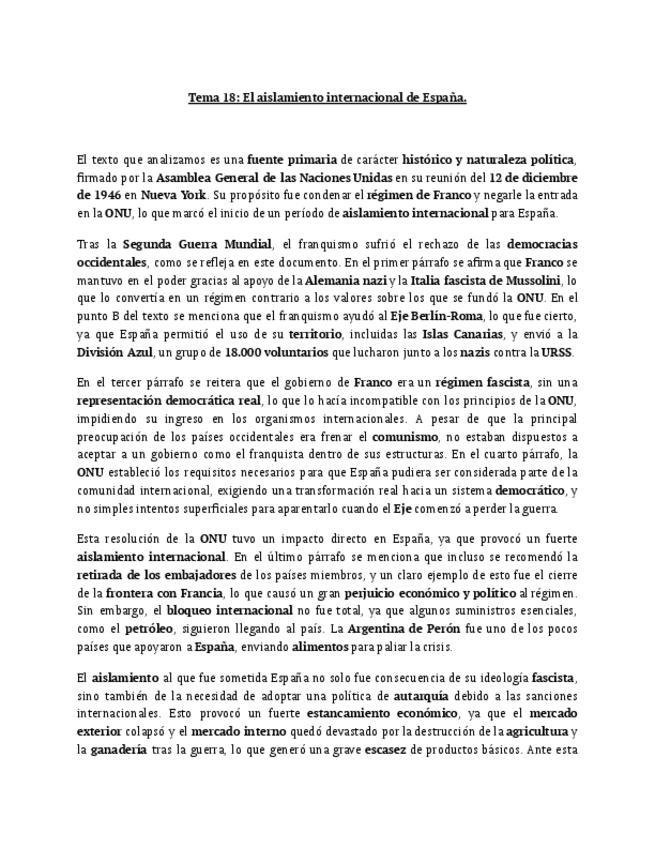 apuntes de historia de España tema 18. Redactado y listo para estudiar.