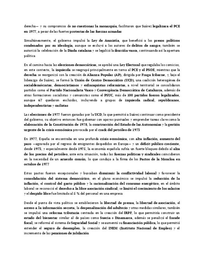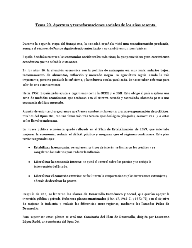 apuntes de historia de España tema 20. Redactado y listo para estudiar.