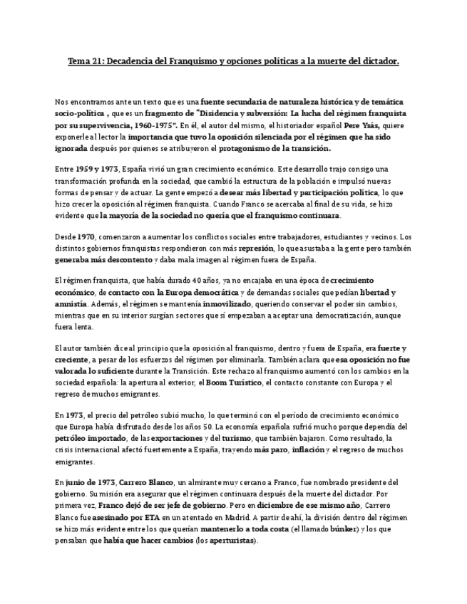 apuntes de historia de España tema 21. Redactado y listo para estudiar.