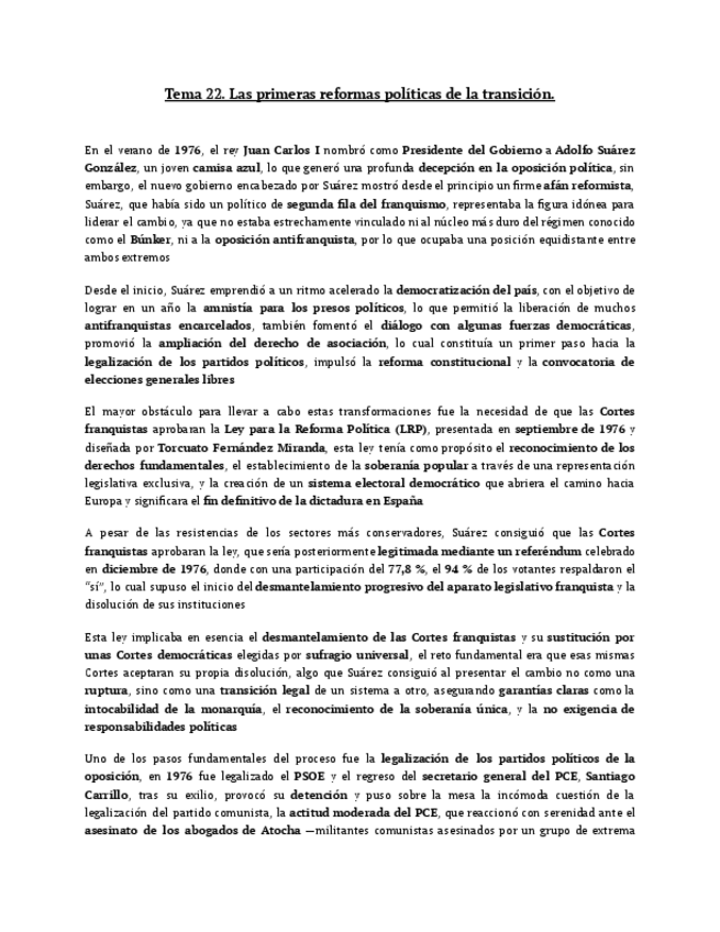 apuntes de historia de España tema 22. Redactado y listo para estudiar.