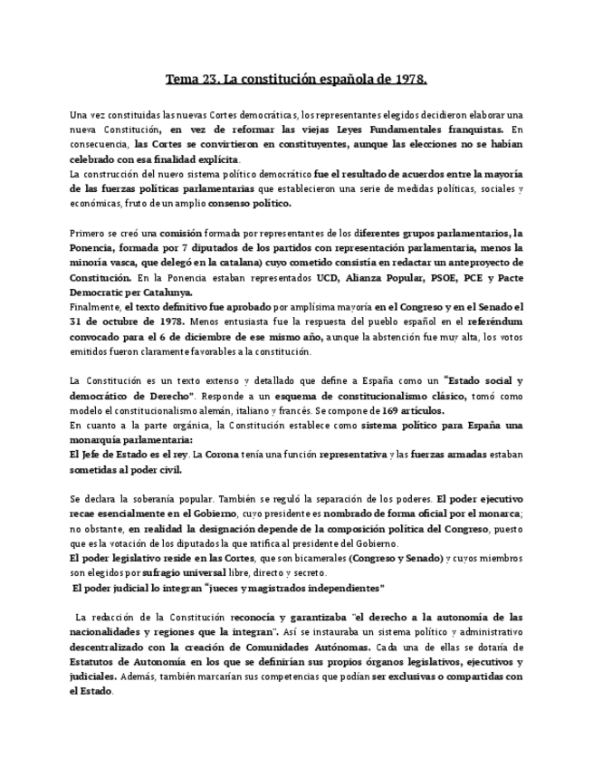 apuntes de historia de España tema 23. Redactado y listo para estudiar.