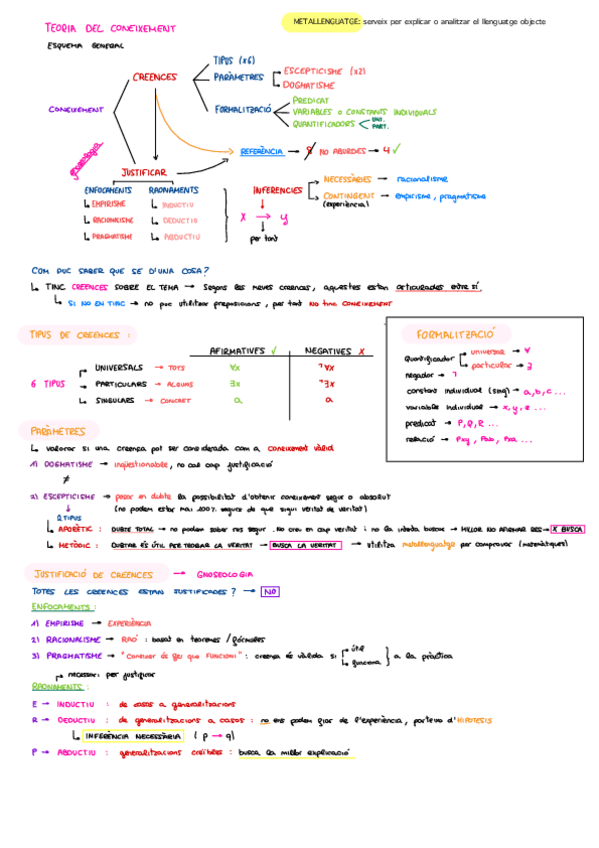 Apuntes en catalán, todo sobre creencias, como se justifican, tipos, parámetros, razonamientos, formalización, verificación...