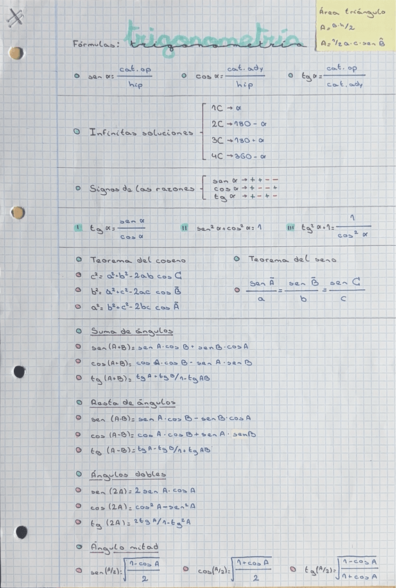 He publicado nuevos apuntes de 1º Matemáticas I: Trigonometria-Formulas-Resumen.pdf