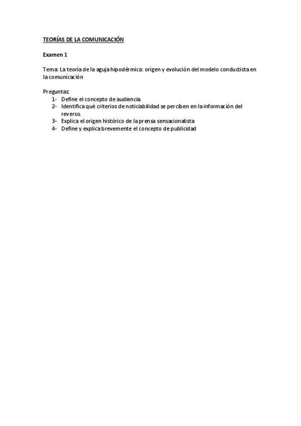 He publicado nuevos examenes de 1º Teorías de la Comunicación: Exámenes