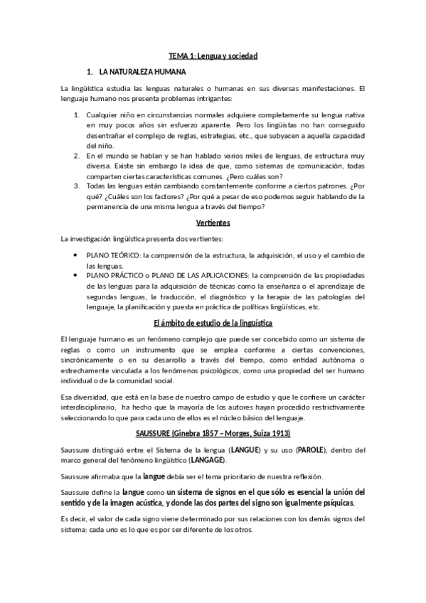 Tema 0: Introducción a la asignatura Tema 1: Lengua y sociedad Lengua 2: Las lenguas del mundo y la lingüística histórica