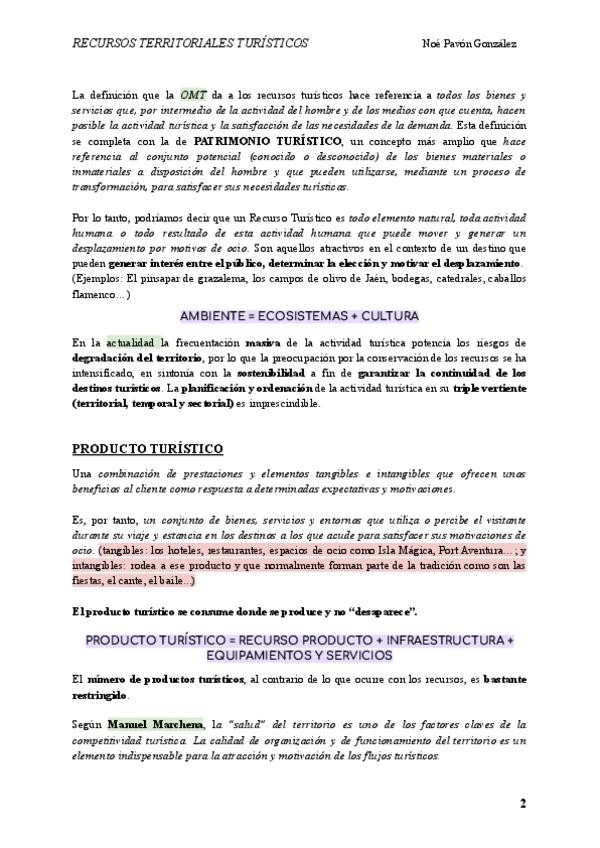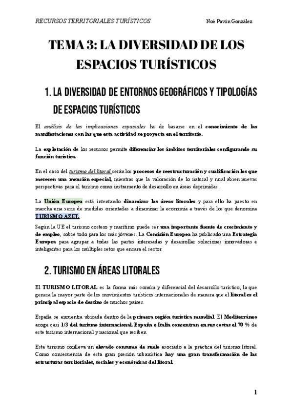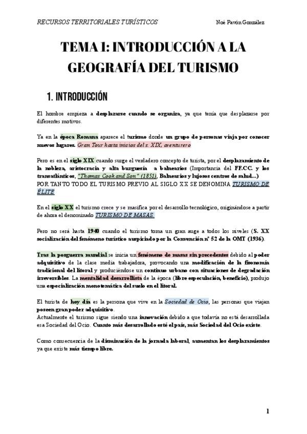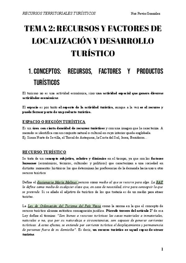 Este es el tema 1 de Recursos Territoriales Turísticos resumido.
