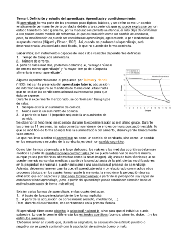 Temario Aprendizaje y Condicionamiento