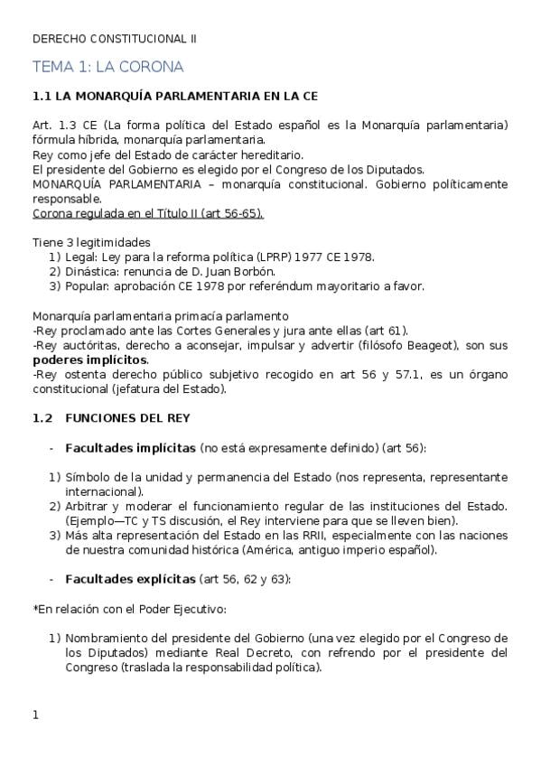He publicado nuevos apuntes de 1º Derecho Constitucional: Constitución y Fuentes del Ordenamiento Jurídico. Justicia Constitucional: Tema 1- La Corona.docx