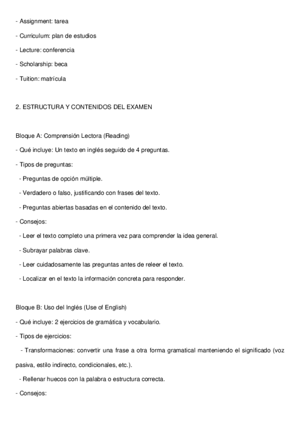 PALABRAS CLAVES EN INGLES PARA PREPARAR EL EXAMEN DE SELECTIVIDAD