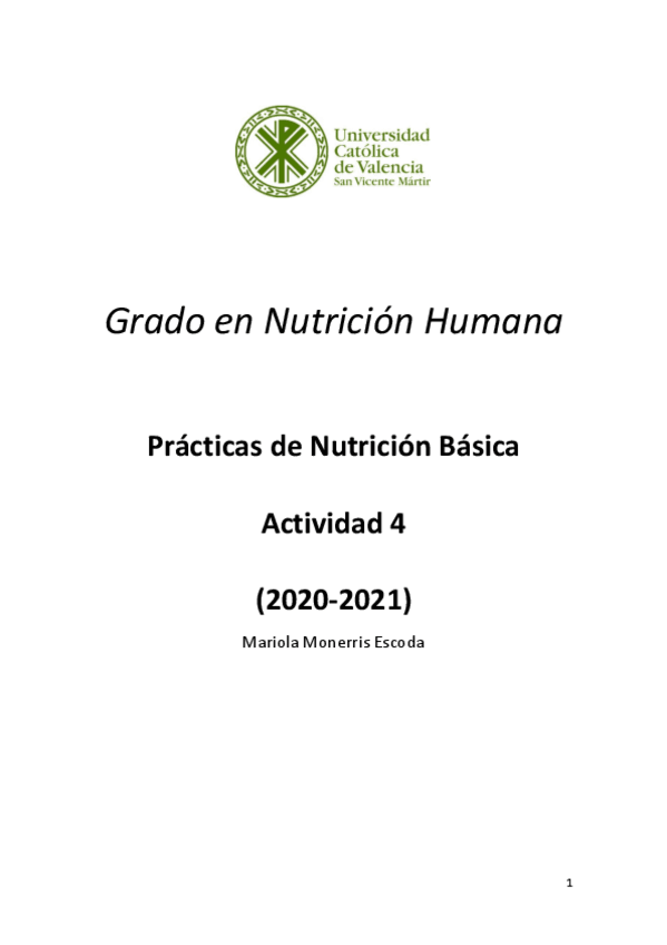 Actividades Nutrición Humana
