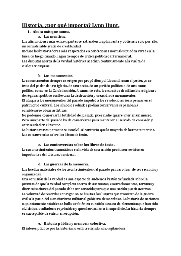 He publicado nuevos apuntes de 1º Introducción a la Historia: Apuntes Control Lectura Lynn Hunt Historia, ¿por que importa?.pdf