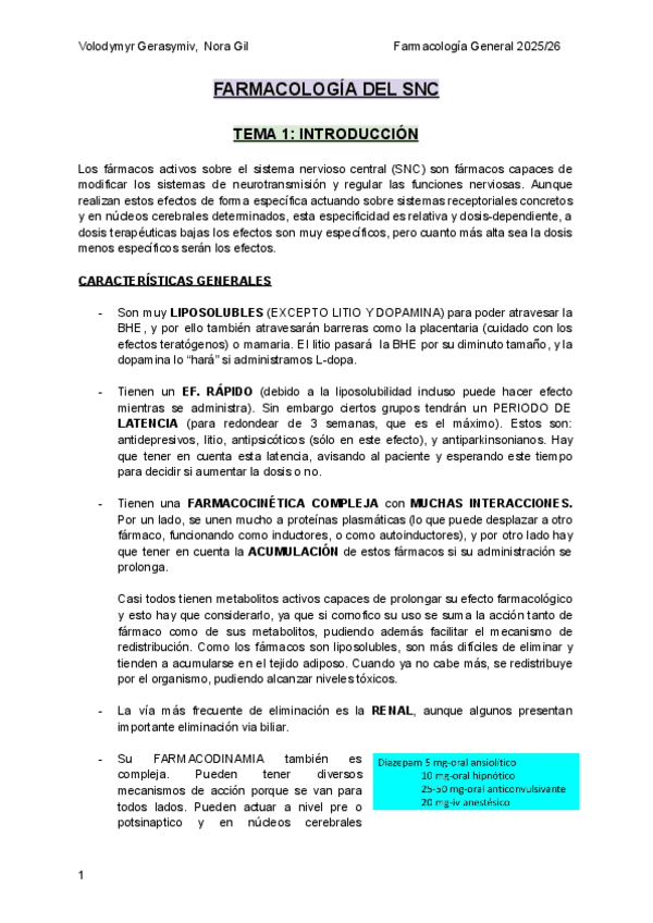 He publicado nuevos apuntes de 3º Farmacología General: FÁRMACOS SNC