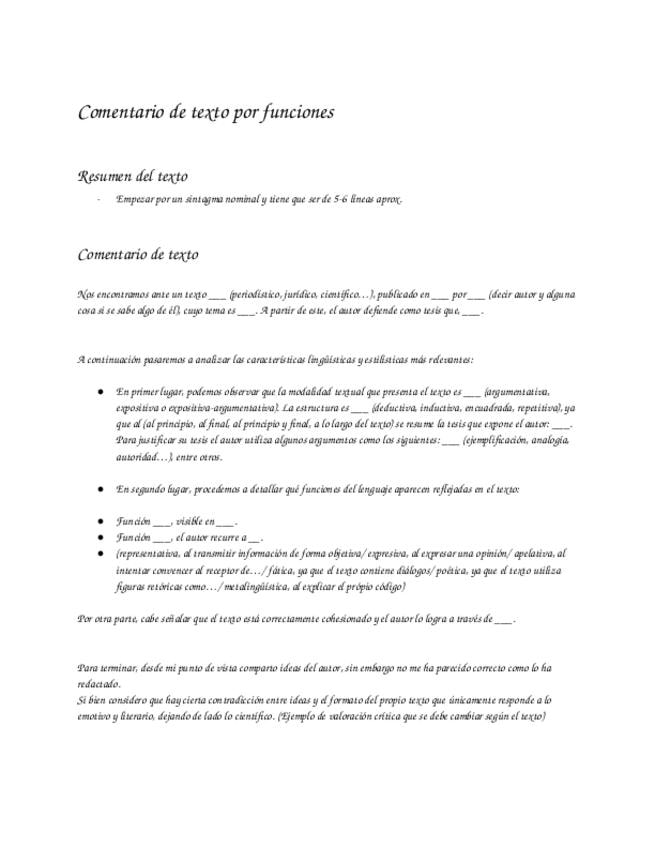 Plantilla para hacer un comentario de texto por funciones para la PAU