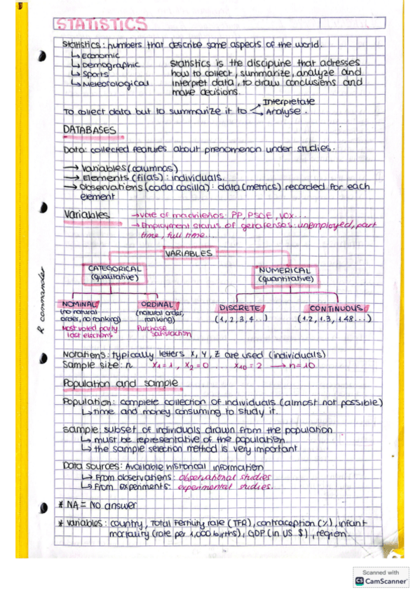 In English The complete course of statistics class in perfect notes
