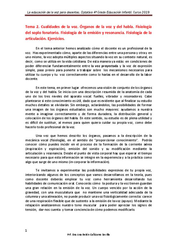 He publicado nuevos apuntes de 4º La Educación de la voz para docentes: Temario