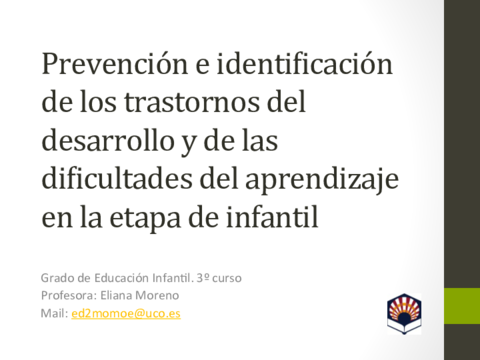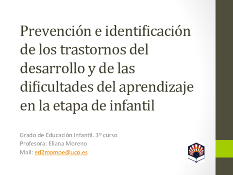 He publicado nuevos apuntes de 3º Prevención e identificación de los trastornos del desarrollo y de las dificultades del aprendizaje en la etapa infantil: Temas