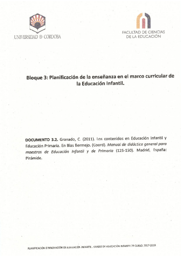 He publicado nuevos apuntes de 2º Planificación e innovación en educación infantil: Temario