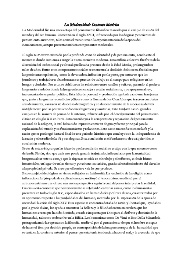 Disertación sobre el contexto histórico de la Modernidad