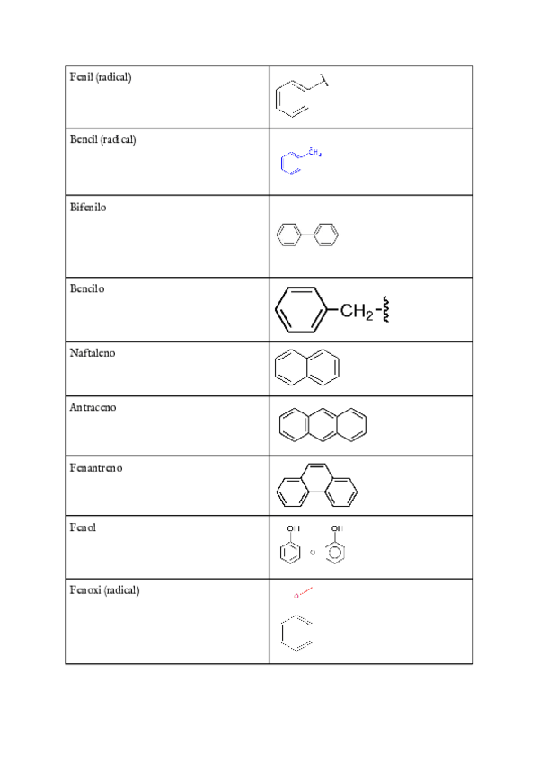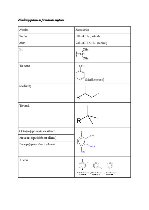 Nombres comunes de compuestos y radicales que caen normalmente